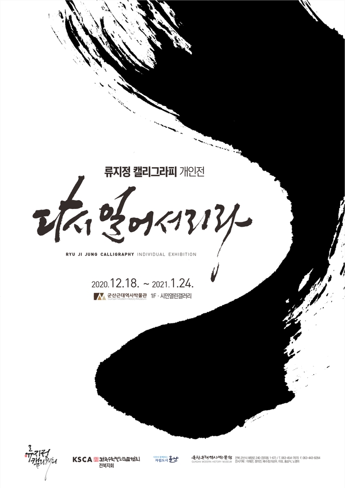 군산시 근대역사박물관(이하 박물관)은 내년 1월 24일까지 1층 시민열린갤러리에서 류지정 캘리그라피 개인전 '다시 일어서리라'展을 개최한다고 밝혔다.