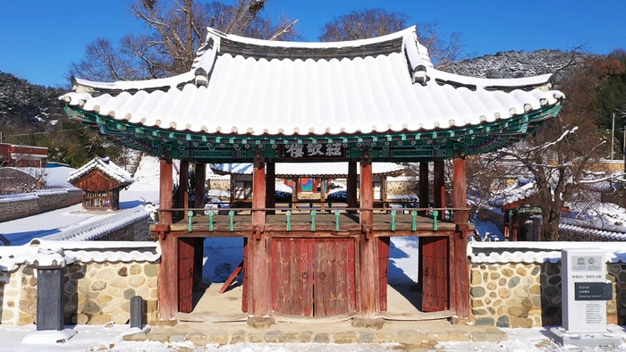 하루 종일 함박눈이 내린 무성서원 일대는 우아한 건축미와 함께 눈꽃에 덮인 은행나무와 소나무가 어우러져 환상적인 자태를 자아낸다.