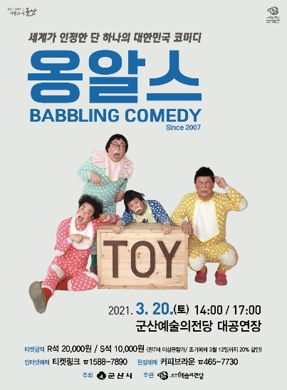 군산예술의전당 올해 첫 기획공연인 ‘옹알스’가 군산에 공연을 선보이며 유쾌한 웃음을 전달한다.