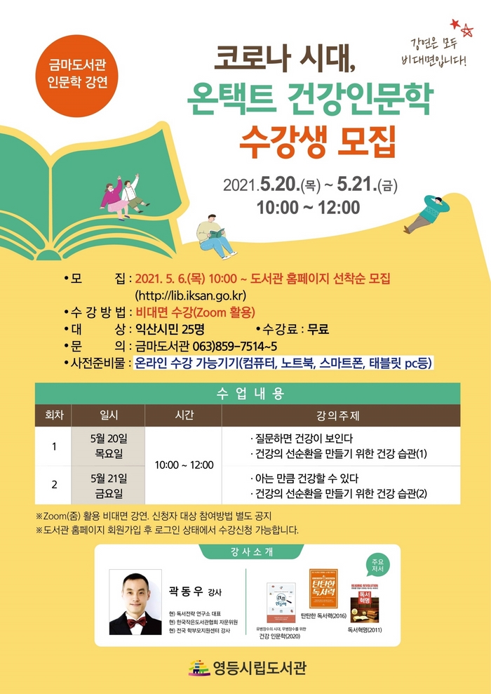 익산 금마도서관이 시민들을 대상으로 다양한 건강 정보를 제공하기 위해 비대면 강의를 실시한다.