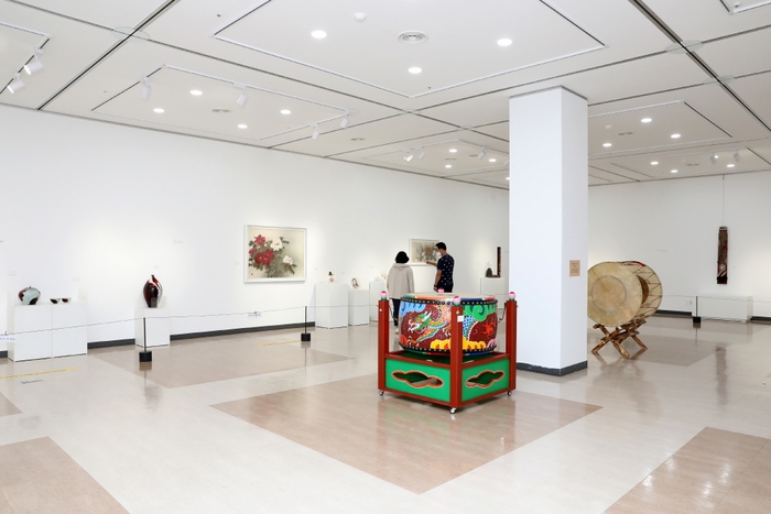 소순수 명인의 ‘교방고’, ‘좌고’, ‘대형장구’, 허희철 작가의 ‘산조아쟁’, ‘거문고’, ‘산조가야금’ 등의 국악기들은 그 소리가 궁금하리만큼 전통 기법으로 정교하게 제작돼 눈길을 끈다.
