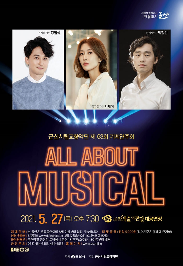행복한 5월 군산시립교향악단 기획 음악회 ‘All About Musical’이 오는 27일 군산 예술의전당 대공연장에서 열린다.