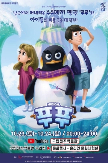 국립전주박물관(관장 홍진근)는 오는 23일 '코로나19'의 장기화로 지친 어린이들을 위한 어린이 뮤지컬 ‘푸푸’를 온라인으로 공연한다고 밝혔다.
