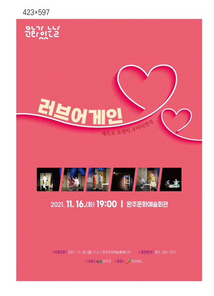 완주군(군수 박성일)이 오는 16일 문화예술회관에서 연극 <러브어게인>을 공연한다.
