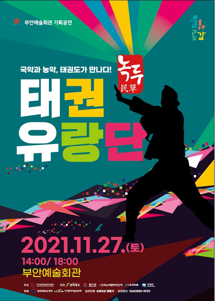 부안예술회관은 오는 27일 오후 2시와 6시 2회에 걸쳐 ‘태권유랑단 녹두’를 무료 공연한다고 밝혔다.