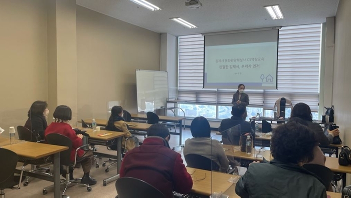 김제시(시장 박준배)는 19일 문화관광해설사 11명을 대상으로 전라북도 관광마케팅종합지원센터에서 역량강화 교육을 실시했다.