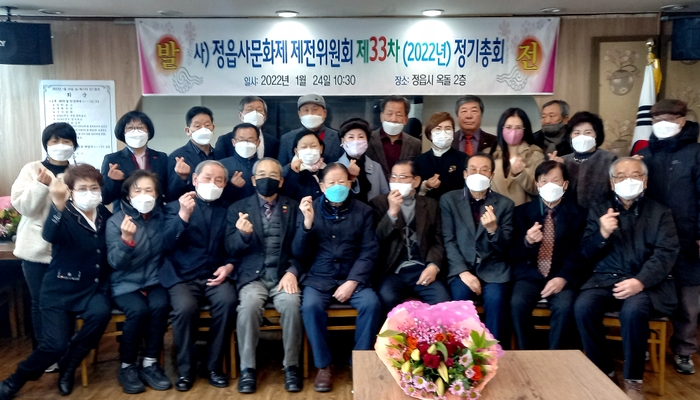 (사)정읍사문화제 제전위원회(이사장 조택수)는 지난 1월 24일(월) 옥돌회관 2층회의실에서 코로나19 방역지침을 준수하면서 정읍사문화제 제전위원회 정기총회를 열어, 유진섭시장을 대리한 서종원 문화행정국장, 윤준병국회의원, 조상중시의장이 참석한 가운데 이사장 및 감사를 선출하였다.