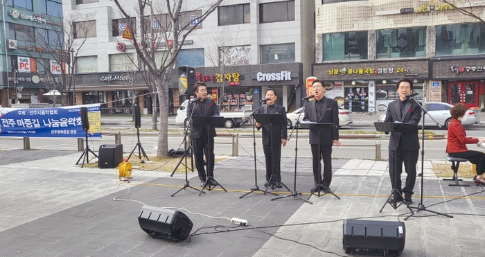 전주첫마중길 광장에서의 빅브라더스남성4중창의 선율은 주변을 왕래하는 지역주민들과 관광객들에게 멋진 선율의 울림으로 전주를 방문하는 첫 마중길에서의 의미를 되새길 수 있었다.