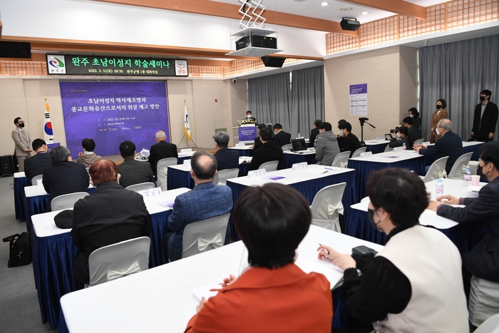 완주군과 국립완주문화재연구소, 천주교 전주교구 호남교회사연구소는 31일 군청 1층 대회의실에서 각계 전문가 40여 명이 참석한 가운데 초남이성지 역사 재조명과 종교문화유산으로서의 위상 제고 방안을 위한 2차 학술세미나를 공동 개최했다.