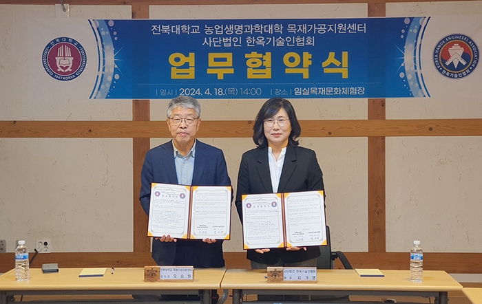 전북대학교 목재가공지원센터(센터장 오승원)와 한옥기술인협회(협회장 김가영)가 운영하는 임실 목재문화체험장과 국내 목재 관련 산업 발전과 활성화를 위해 손을 맞잡았다.