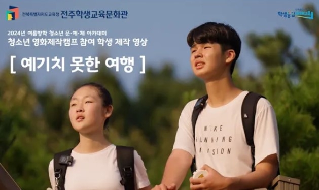 전주학생교육문화관(관장 이현규)이 방학 중 운영한 '청소년 영화제작스쿨'에 참여한 학생들이 제작한 영화 ‘예기치 못한 여행’이 제18회 전북청소년영화제에 출품됐다.