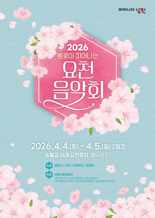 2026 봄꽃이 피어나는 요천 음악회 개최 남원시는 오는 4월 4일부터 5일까지 요천 둔치 월궁광장에서 ‘2026 봄꽃이 피어나는 요천 음악회’를 개최한다고 밝혔다.올해 음악회는 형식적인 개막식을 생략하고, 시민이 직접 참여하며 즐길 수 있는 ‘…