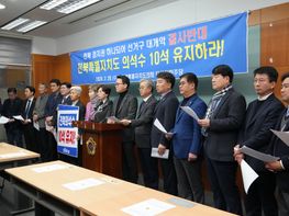 4·10 총선 선거구획정 과정에서 전북지역 의석이 1석 줄어들 우려가 커지자 전북도의원들의 목소리가 연일 고조되고 있다. 더불어민주당 소속 전북자치도의회 도의원들은 28일 도의회에서 기자회견을 열고...