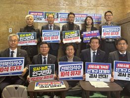 더불어민주당 전남·북 국회의원들은 27일 “지역 간 불균형 농어촌지역 소멸을 가속화 하는 선거구 개악을 중단하라”’며 국회 본 본관에서 항의 농성에 들어갔다. 국회의원...