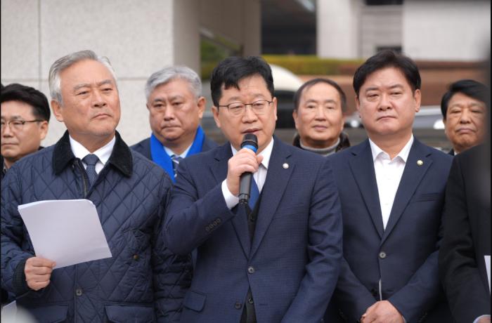 안호영 국회 기후에너지환경노동위원장과 더불어민주당 김문수·윤종군·이재강 의원은 24일 서울 서초구 대법원 앞에서 김용 전 민주연구원 부원장 사건의 조속한 선고를 촉구하는 기자회견을 열고 촉구의…
