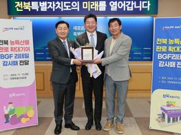 전북자치도는 도내 농특산물 판로 확대에 기여한 ㈜BGF리테일에 감사패 전달했다. 도는 19일 도청 회의실에서 김관영 도지사와 민승배 BGF리테일 대표이사, 생산자 단체인 서재필 고창황토배기청정고구마연합 대표 등이...