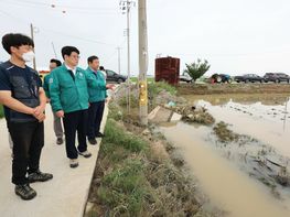 권재한 농촌진흥청장이 취임(7.8.) 후 첫 현장 행보로 11일, 전북특별자치도 익산시 망성면·용동면의 집중호우 피해지역을 찾아 시설채소(토마토, 수박, 상추 등), 논콩 등 농작물 침수 피해 상황을...