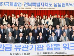 새만금개발청(청장 김경안)과 전북자치도(지사 김관영)는 23일 김제시 소재 국립청소년농생명센터에서 ‘새만금개발청과 전북자치도의 상호 협력과 소통 활성화를 위한 상생협약’을 체결하고 국무조정실,...