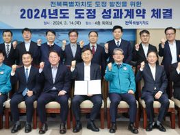 전북자치도는 4급 이상 국‧과장급 공무원 1백12명 모두가 민선 8기 도정 발전을 위한 각각의 과제와 목표를 설정하고 이에 따른 성과 달성과 책임행정을 강화하기 위해 2024년 도정 성과계약을 체결했다...