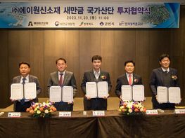 전북도와 새만금개발청, 군산시, 한국농어촌공사는 23일 ㈜에이원신소재와 ‘이차전지 음극재 제조시설 건립을 위한 투자협약’을 체결했다고 밝혔다. 이날 협약식에는 김종훈 도 경제부지사, 김경안 새...