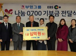 왼쪽 두 번째부터 부영그룹 박현순 전무, 최양환 대표이사, 이중근 회장, EBS 전제...