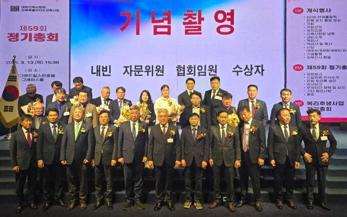 전북자치도는 13일 전주 그랜드힐스턴호텔에서 대한건축사협회 전북자치도건축사회 ‘제59회 정기총회’를 개최했다고 밝혔다.이날 행사에는 김형우 전북자치도 건설교통국장, 김재록 대한건축사협회장, 이…