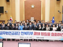 전주시의회는 “공무원연금공단 전북지부를 광주지부에 통합 운영하겠다”는 결정에 대해 반발했다. 시의회는 21일 제407회 임시회 1차 본회의에서 남관우 의원이 대표 발의한 '공무원연금공단...