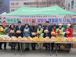 '더 따뜻하게~! 더 행복하게~! 더 건강하게~!' 구민들과의 함께 걷는 덕진구가 ‘2024 설맞이 명절음식 나눔’ 봉사활동을 가졌다. 전주시 김봉정 덕진구청장, 이성희 사랑...