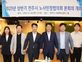 전주시노사민정협의회 사무국은 29일 전주시 사회혁신센터에서 ‘2023년 상반기 노사민정협의회’를 개최했다. 이날 협의회는 △신규위원 위촉 △2022년 노사민정 협력 활성화 사업 성과 및 전...