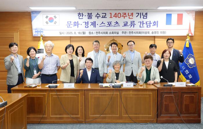 전주시의회는 한·불 수교 140주년을 기념해 문화·경제·스포츠 교류 간담회를 열고 협력 방안을 모색했다.이날 간담회는 전주시의회 문화경제위원회 부위원장 이성국 의원, 송영진 의원 주최로 18일 의회 …