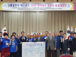 한반도 평화정착과 통일을 기원하는 ‘전세계 160개국 동참 인류평화 프로젝트- 신통일한국 피스로드 2022 전주시 통일대장정’ 행사가 25일 오후 전주시 덕진구 권삼득로 관내소재 전북보훈회관...