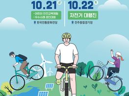 생활 속 탄소중립 실천을 위해 전국민이 함께 모여 친환경 교통수단인 자전거를 타고 함께 도심 속을 달리는 자전거 축제가 전주에서 열린다. 전주시와 행정안전부는 오는 21일과 22일 이틀간 한국전통문화전당과 전주종합...