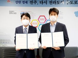 전주시와 SK브로드밴드 전주방송이 지역경제 활성화와 소상공인 지원을 위해 힘을 모으기로 했다. 시는 4일 시장실에서 우범기 전주시장과 김희수 SK브로드밴드 전주방송 보도제작국장 등이 참석한 가운데 ‘...