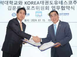 우석대학교(총장 박노준)가 태권도의 발전과 가치를 드높이기 위해 KOREA 태권도 유네스코 추진단·김운용스포츠위원회와 업무협약을 맺었다. 15일 전주캠퍼스 대학 본관 22층 대회의실에서 열린 업무협...