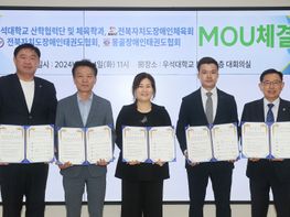 우석대학교(총장 박노준) 산학협력단과 체육학과가 4일 전북자치도장애인체육회·전북자치도장애인태권도협회·몽골장애인태권도협회와 업무협약을 체결하고 전북특별자치도의 장애인 스포츠 발전에 노력하기...