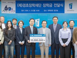 전주대학교(총장 박진배)가 (재)경초장학재단으로부터 학생들을 위한 장학금을 받아 재학생들에게 장학금 전달식을 진행했다. 전주대학교와 (재)경초장학재단은 지난 22일 오후 2시, 대학본관 접견실에서 장학금 전달식...