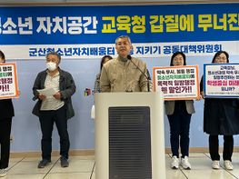 군산청소년자치배움터 자몽 지키기 공동대책위원회는 2일 전북교육청에서 기자회견을 열고 "군산교육지원청은 생태공원 등을 조성하기로 한 청소년 자치공간에 테니스장을 일방적으로 설치한다는 통보를 즉각 중단하라&...