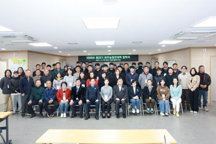 완주군이 12일 완주군농업기술센터 강당에서 신입생 63명과 유희태 완주군수, 군 의원 등이 참석한 가운데 ‘2026년도 제20기 완주농업인대학’ 입학식을 열고 본격적인 교육 일정에 돌입했다.이번 제20기 …
