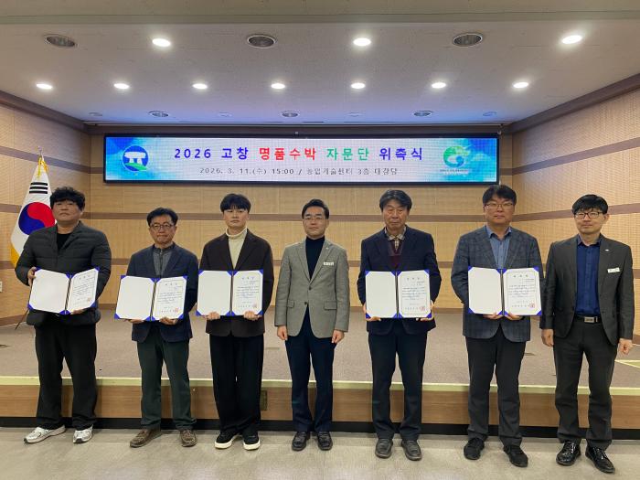 고창군이 ‘고창수박’의 지리적표시 등록 2주년을 맞아 지난 11일 농업기술센터에서 ‘2026 고창 명품수박 자문단’ 위촉식을 개최하고 자문위원들에게 위촉장을 수여했다.자문단은 수박 재배기술과 브랜드…
