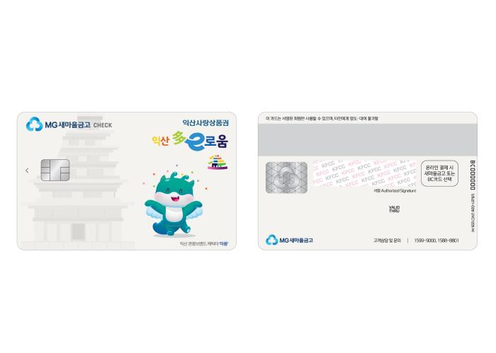 익산시가 지역사랑상품권 '익산 다이로움'의 결제 수단을 다양화한다. 시는 오는 10일부터 새마을금고 체크카드를 신규 발급한다고 9일 밝혔다.이로써 다이로움 카드는 기존 4종의 체크카드(하나·농협·신…