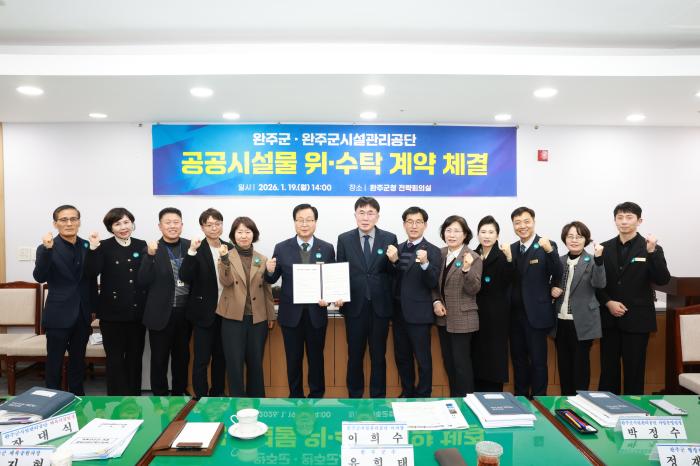 완주군과 완주군시설관리공단이 관내 4개 체육시설(수영장)에 대한 신규 위수탁 계약을 체결하고 지방공기업 방식의 효율적이고 지속적인 관리운영에 들어갔다.19일 양 기관은 완주군청 전략회의실에서 ▲완…