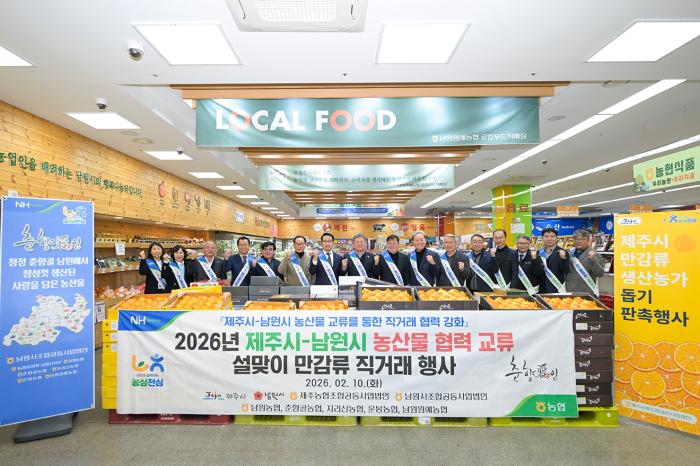 남원시(시장 최경식)와 제주시(시장 김완근), 남원시조합공동사업법인(대표 이창준)가 설 명절을 앞두고 지역 간 농산물 상생 협력을 위한 ‘설맞이 만감류 직거래 행사’를 개최하며 농업 교류 협력 강화에…