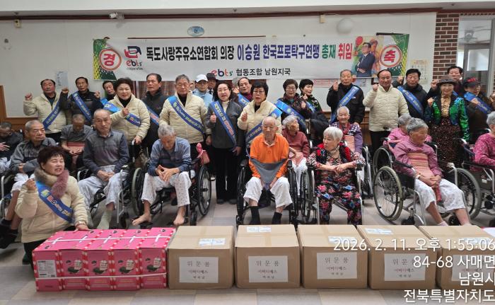 요양시설에서 설날맞이 특별 봉사활동하는 남원지국소셜벤처기업 ebts 협동조합 (회장 이승원) 남원지국 김종관센터장등 40여명은 쌀쌀한 가운데에도 외롭고 쓸쓸하게 계실 어른신들을 생각하며 조합원 모두…
