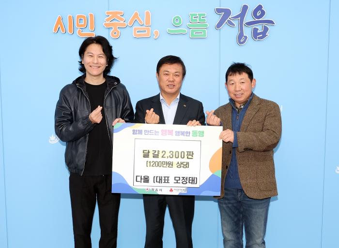 정읍시 감곡면 소재 기업 ‘다올(대표 모정태)’과 이평면 소재 ‘농업회사법인 KJ(대표 정용비)’가 6일 설 명절을 맞아 관내 경로당과 취약계층의 풍성한 식탁을 지원하기 위해 시가 1200만원 상당의 달걀…