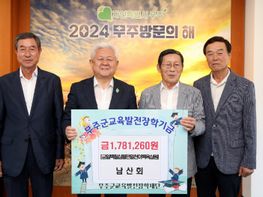 무주군은 지난 10일 무주읍 ‘남산회’에서 무주군교육발전장학재단에 장학금 1,781,260원을 기탁했다고 밝혔다. 신우철 회장은 “회원들 모두가 부모의 마음으로 무주 학생들이 저마...
