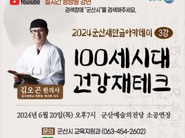 노래하는 한의사 김오곤 원장이 군산에 온다. 군산시는 김오곤 원장의 「100세 시대 건강 재테크」에 대한 강의를 20일 오후 7시 군산예술의전당 소공연장에서 진행한다. ‘노래하는 한의사’로 ...