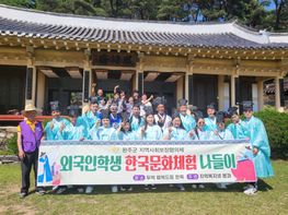 완주군 지역사회보장협의체 지역복지넷 분과(분과장 최현주)가 용진읍 두억마을 행복드림한옥에서 우석대학교 외국인 학생들과 한국문화 체험 나들이를 진행했다. 4일 완주군에 따르면 우석대학교와 연계해 진행된 이번 한국...