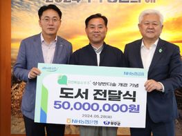 무주상상반디숲(형설지공도서관&무주군가족센터&생활문화센터)이 29일 개관하는 가운데 NH농협은행(행장 이석용)에서 무주군가족센터에 5천만 원을 기탁해 훈훈함을 전하고 있다. 이석용 행장은 &ldqu...