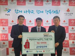 군산시 개정동 행정복지센터는 군산중앙교회(담임목사 박정동)가 지난 13일 어려운 이웃을 위해 사용해 달라며 이웃돕기 성금으로 500만원을 전달했다고 밝혔다. 군산중앙교회는 지역사회의 어렵고 힘든 이웃을 위해 지난...