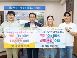 (유)하늘조경건설(대표 임도건)과 (유)글로벌조경(대표 김주아)은 지난 22일 익산시청을 방문하여 나눔곳간 이용자들을 위해 백미 10kg 200포(560만원 상당)와 소머리국밥 200봉(200만원 상당)를 기탁했...